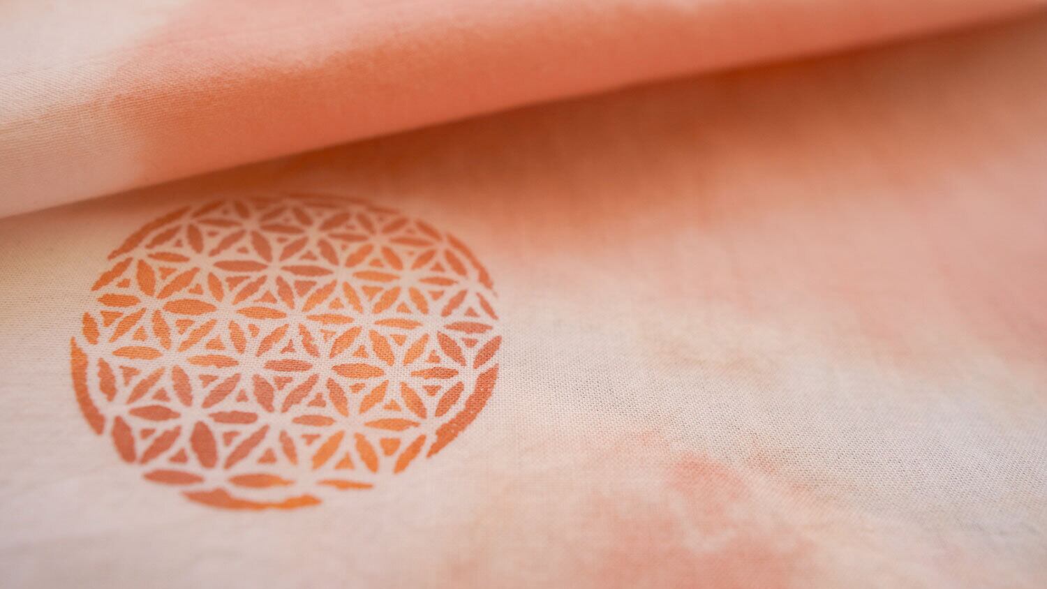 ・ベースのドット模様はベンガラ染料を使用。フラワーオブライフはシルクスクリーン印刷。