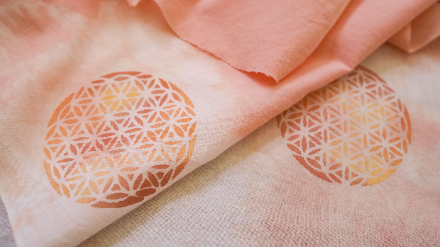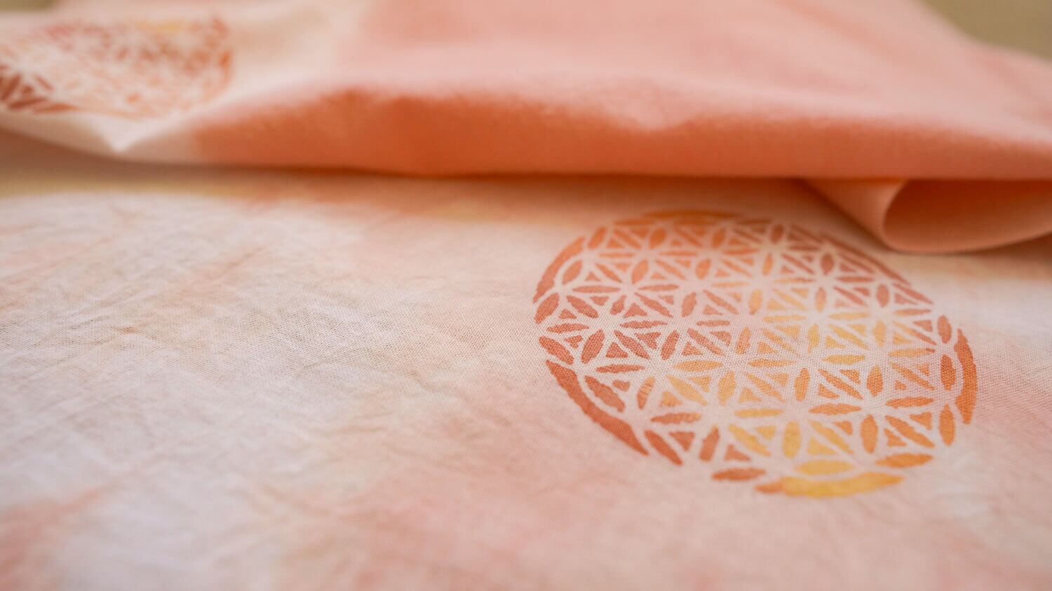 【復活!】ベンガラ型染めフラワーオブライフ(茜染め)