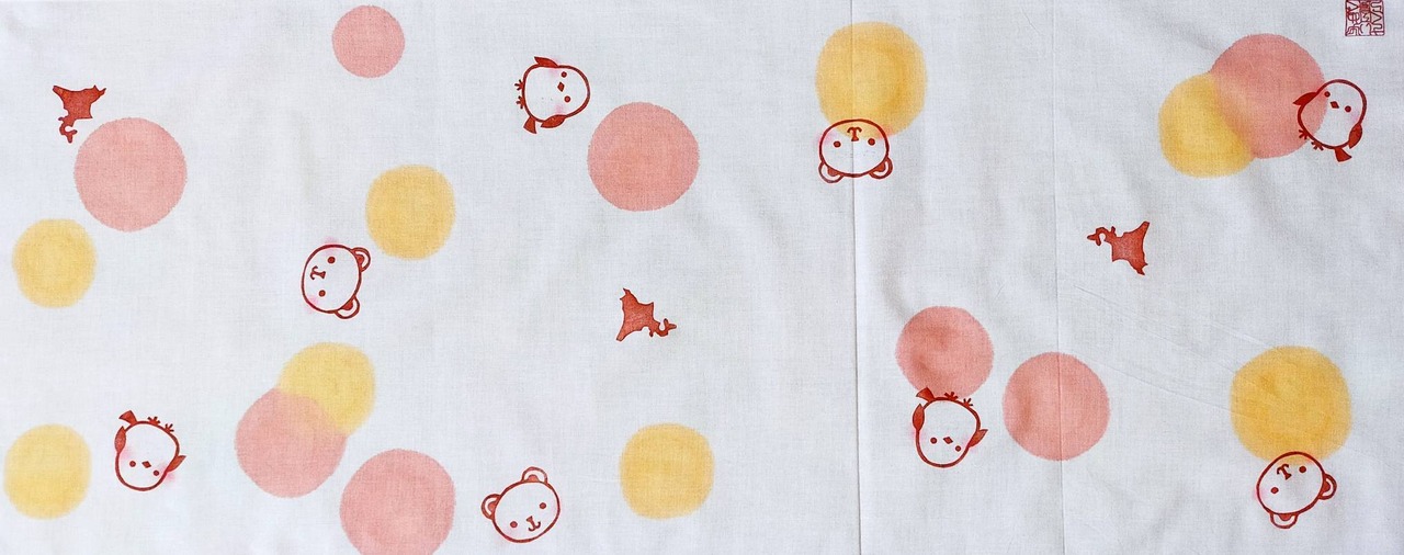 ・写真の「色味」と「絵柄の配置」は一例です。1枚1枚作成しているため、ひとつとして同じものはございません。世界に1枚だけの手ぬぐいをお楽しみください。