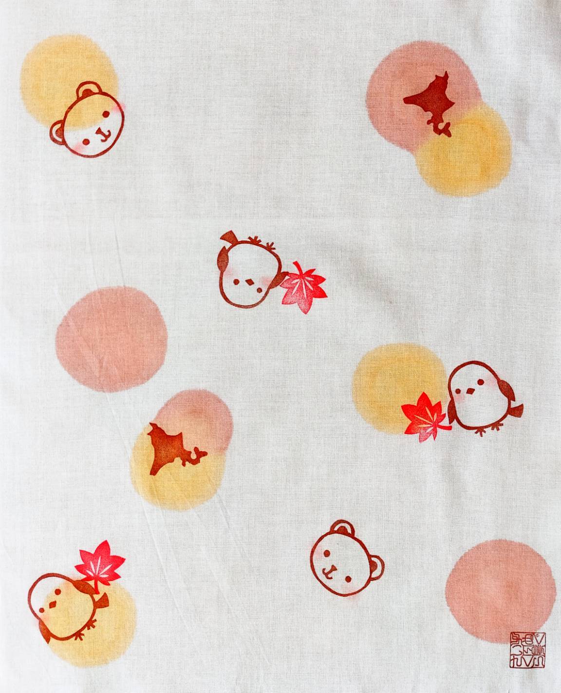 ・写真の「色味」と「絵柄の配置」は一例です。1枚1枚作成しているため、ひとつとして同じものはございません。世界に1枚だけの手ぬぐいをお楽しみください。